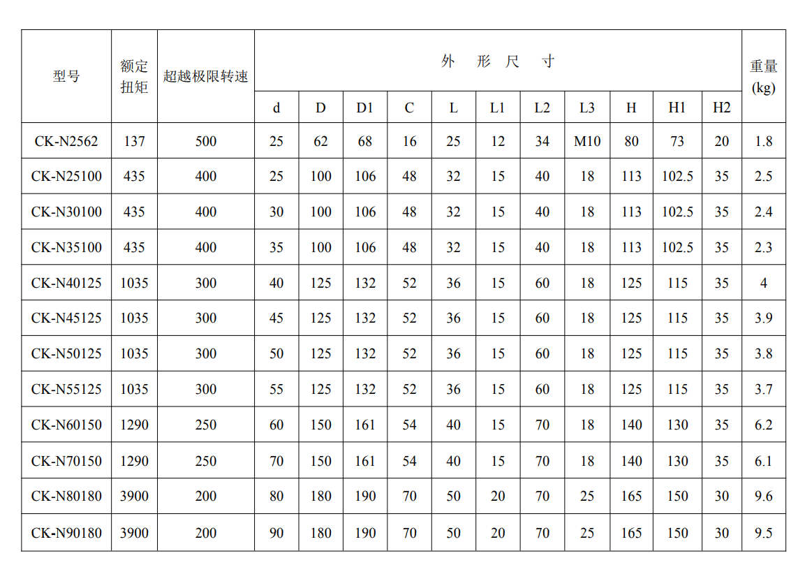 特性及應(yīng)用:CK-N 系列為無(wú)不含油封無(wú)軸承支撐的楔塊式單向離合器,適用于低運(yùn)轉(zhuǎn)速度,安裝時(shí), 螺栓與擺桿槽孔的間隙為槽孔的 1%寬度,擺桿與離合器在安裝后*可有內(nèi)應(yīng)力存在(安裝時(shí)螺栓 不可將扭力臂軸向鎖住,徑向也要留有間隙,使得沒(méi)有彎曲應(yīng)力施加于軸承及擺桿上)。 CK-N 系列主要應(yīng)用于包裝、印刷設(shè)備上的防止逆轉(zhuǎn),定位給料;可在*小的空間內(nèi)提供較大的扭 矩。