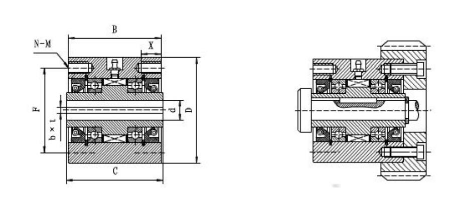 Characteristic and application: CKZ - A series of wedge type overrunning clutch, it contains two sets of deep groove ball bearings and oil seal.According to different needs, factory with lubricating oil or grease.The inner ring with outer ring and the shaft with a key connection for h7 tolerance and somatic h7 tolerance matching, and bolt connection.Used in packaging, transport.Metallurgy, mining and other machinery.Prevent reversed, or beyond, suitable for running at a moderate spe.