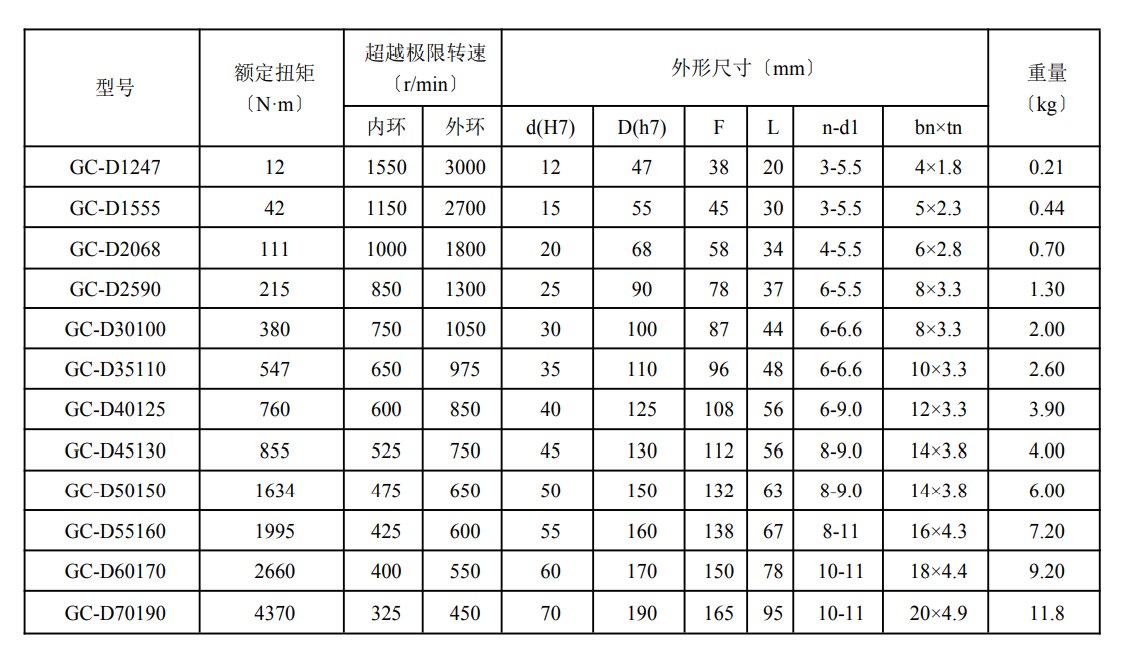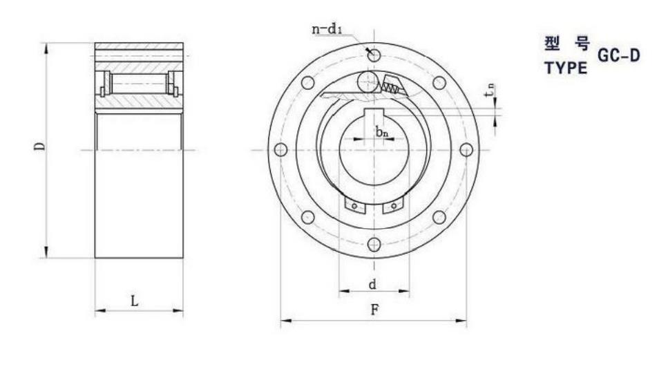 Characteristics and application: GC - D series for bearing supporting miler overrunning clutch.When using need to cooperate with the bearing installed to withstand the axial load, the user must also provide lubricating grease and external oil seal.Standard lubrication method is used engine oil lubrication.Standard installation way as the outer ring with seam allowance, and bolted.The inner ring and shaft to key link.Tolerance of workpiece machine wall hole must be H7, ensure higher coaxial degree of inner and outer ring.This series is often used in packaging, printing, food, medical, textile chemical and other mechanical equipment.
