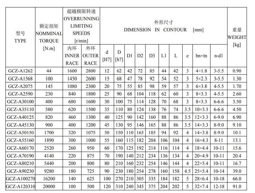Characteristics and application: GCZ - A series of miler overrunning clutch.Enclosed bearing support and oil seal, use 2 160 series ball bearing support, only factory with lubricating oil.The inner ring and shaft connection with key, outer ring through the flange connection to the machine to the walls.It is mainly used for overrun clutch or .
